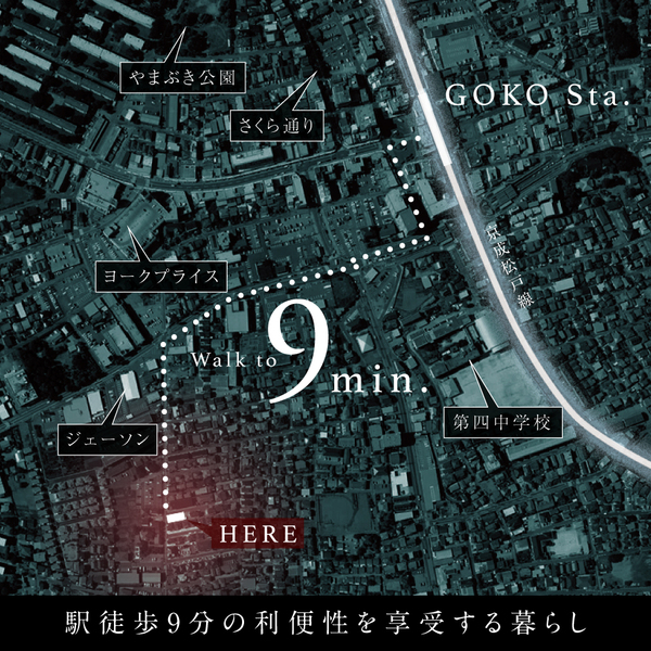- ※物件から周辺のお店・施設までの距離は、利用が想定される道路を通行した場合の距離です。なお、必ずしも最短距離を保証するものではありません。