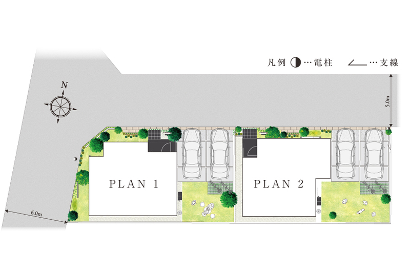134m2のゆとりある街区。駐車場2台並列。