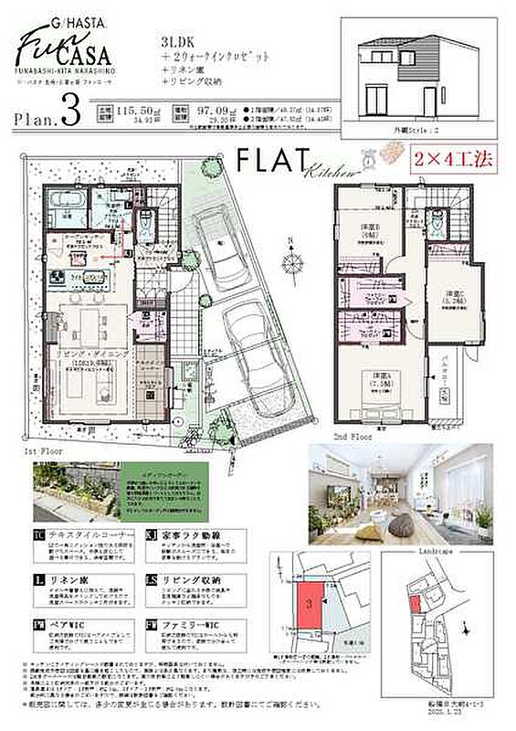 | 建物面積 | 97.09m2 | 土地面積 | 115.5m2 / 私道負担あり 216.78m2(持分8分の1) |