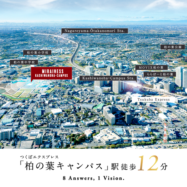 魅力1 「柏の葉キャンパス駅」徒歩12分。区画整理地内に誕生する8邸の街。