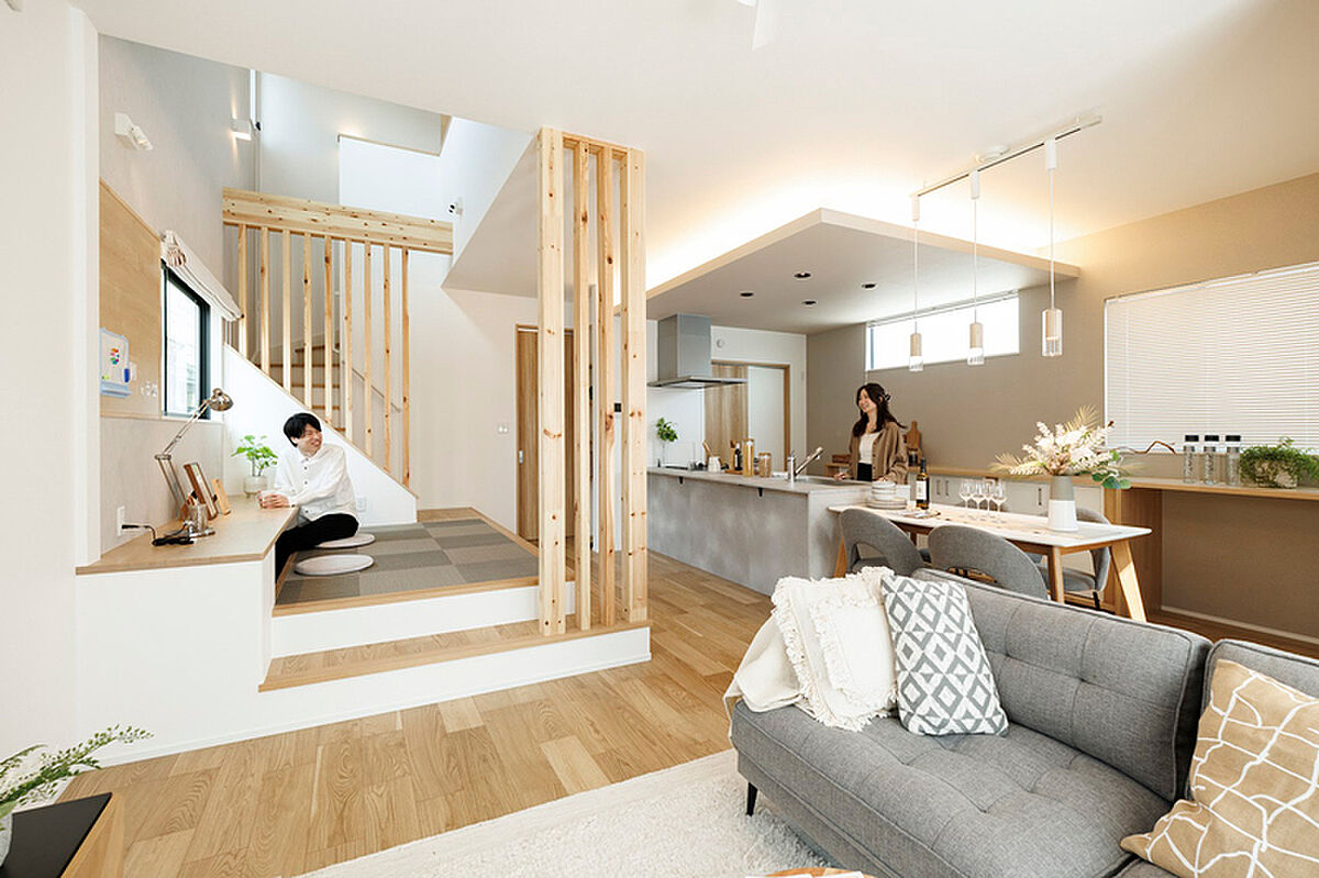 | 間取り | 3LDK(2LDK対応可※別途有償)+ステアリビング+土間収納+リネン庫+ウォークインクローゼット ~ 4LDK(5LDK対応可※別途有償)+土間収納+パントリー+リネン庫+ウォークインクローゼット | 建物構造 | 木造2階建(在来工法) |