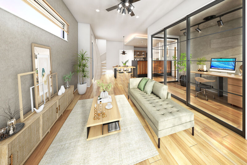 - ※完成予想図やCG合成画像は、門塀・植栽・庭・外観等、実際とは多少異なる場合があります。