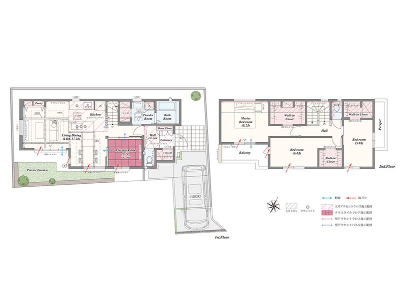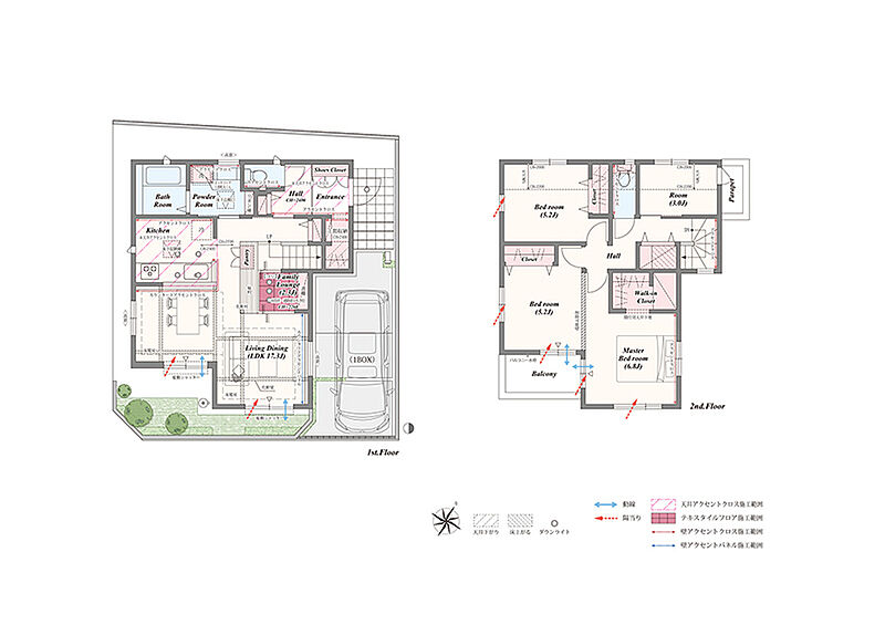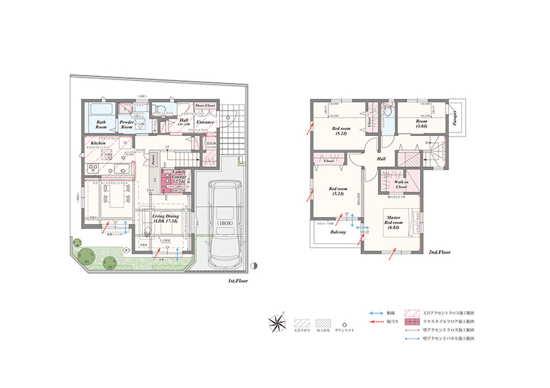 | 間取り | 3LDK+ステアリビング+土間収納+パントリー+リネン庫+2ウォークインクローゼット ~ 4LDK+土間収納+パントリー+リネン庫+3ウォークインクローゼット | 建物構造 | 木造2階建(在来工法) |