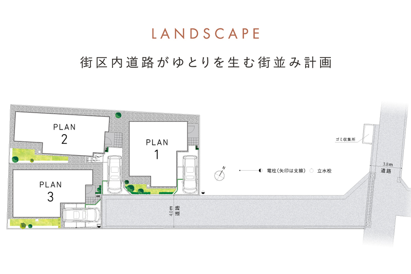 | 駐車場 | 1台 | 道路の幅員 | 3.8m私道、4.0m私道 |