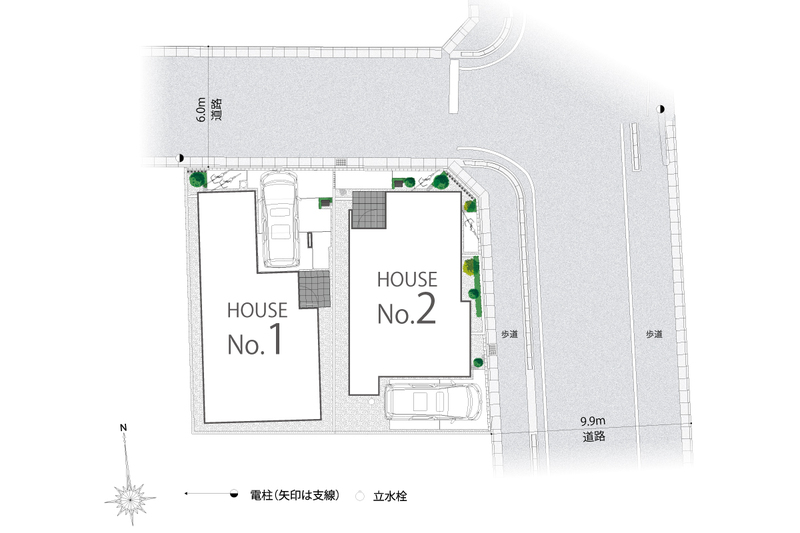 | 建物面積 | 99.74m2~102.86m2 | 土地面積 | 97.32m2 / 私道負担なし |