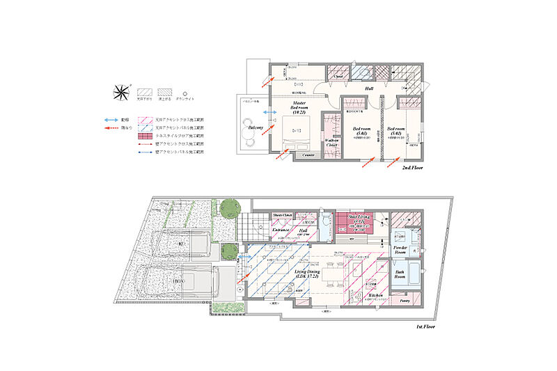 | 建物面積 | 93.46m2~97.5m2 | 土地面積 | 120.1m2~136.19m2 / 私道負担なし |