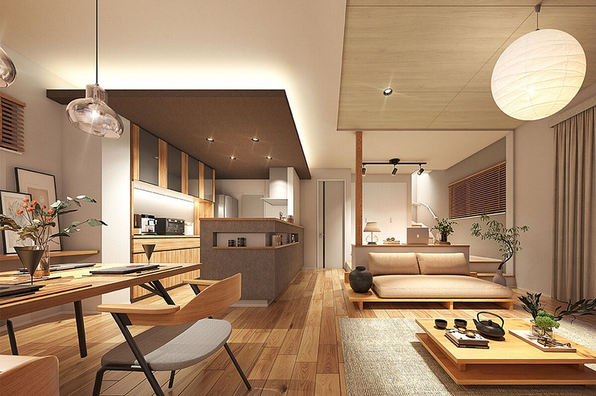 1階には家族がお互いの存在を感じ、自分時間を堪能しながらもそれ...