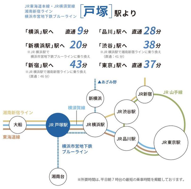 JR東海道本線「戸塚」駅 徒歩2分 JR横須賀線「戸塚」駅 徒歩2分 横浜市営地下鉄ブルーライン「戸塚」駅 徒歩2分 |