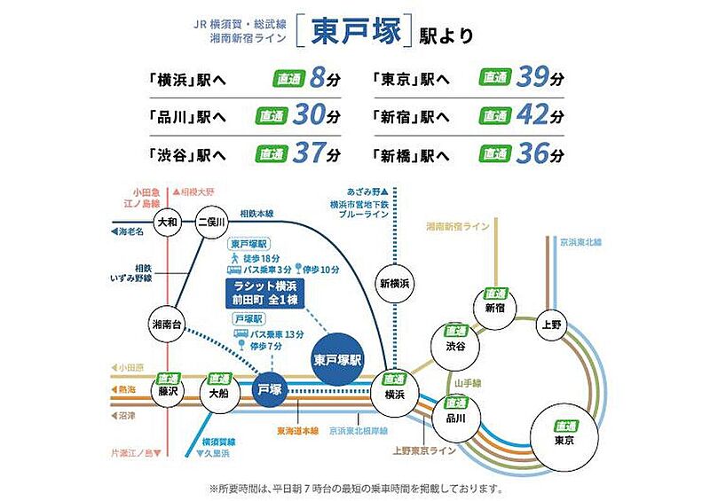 JR東海道本線「戸塚」駅 徒歩2分 JR横須賀線「戸塚」駅 徒歩2分 横浜市営地下鉄ブルーライン「戸塚」駅 徒歩2分 |