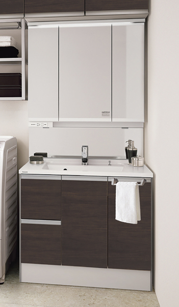 LED付照明付三面鏡や継ぎ目がなくお手入...