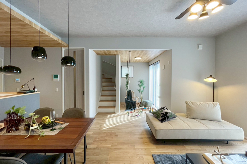 LDKは伸びやかで開放感漂う20帖超の広さを採用。家族の集いはもちろん、友人を招いてのホームパーティーなども楽しめます。大型のインテリアなども自在にレイアウトできます。