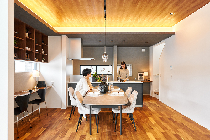 LDKの天井は2.7mを標準として、天井梁部は2.85mに設計。2.2m高のサッシから注ぐ陽光と相まって開放感が漂う空間を演出してくれます。