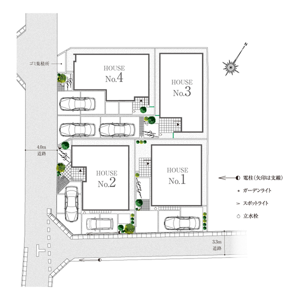 ※販売価格には建物の消費税10%分が含まれます。 ※建ペイ率・容積率に関しては道路幅員、接道状況により数値が異なる場合がございますのでご了承下さい。 ※社会情勢の影響により、仕様・設備・外構などの変更及び一部引き渡し後の設置、取付になる場合がございます。また、完成・引渡日が変更になる場合がございます。 ※現地から駅までの徒歩所要時間は最も遠い区画を起点とした地図上の概算です。 ※4号棟はモデルハウスとなります。(設置日未定) ご契約後も2026年2月15日まで内覧させていただきます。 [設備]公営水道/東京電力・他/都市ガス/本下水/カースペース/植栽その他付帯設備一式 |