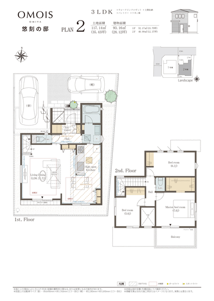 | 建物面積 | 93.16m2 | 土地面積 | 117.14m2 / 私道負担なし |