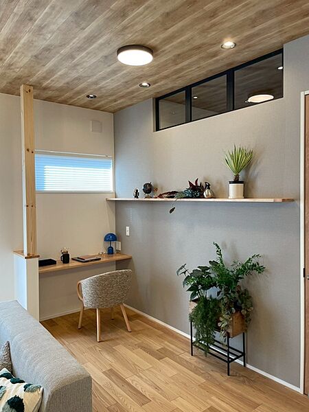 リビングの一角に設けたワークスペースは仕事や自分時間を愉しむ空...