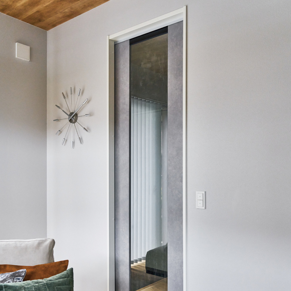 モルタル仕上げの質感を再現した、無機質さとあたたかみが共存するリビングドア。素材の陰影を際立たせ、世界観を引き立てます。