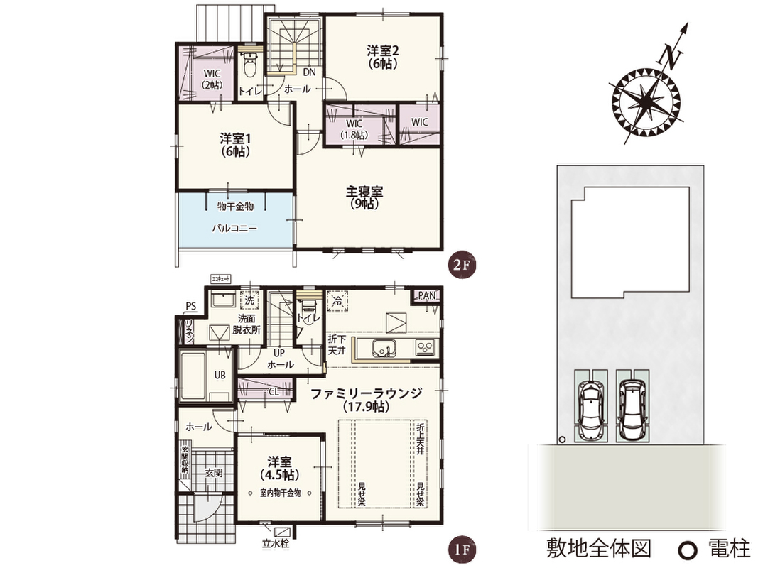 ■ストレートタイプのLDKは開放感があります(1号棟)■2階の居室は全居室にWICを設けた収納たっぷりのプラン(2号棟)■キッチンと洗面所を隣接させることで移動が時短になる家事ラク動線(3号棟)