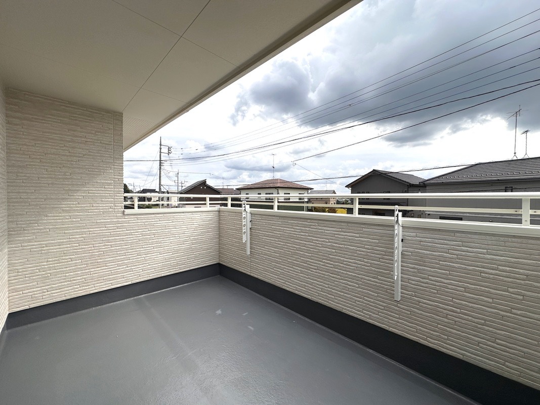 ゆとりあるバルコニーはお洗濯物を干す以外にも家庭菜園もできそう(4号棟)