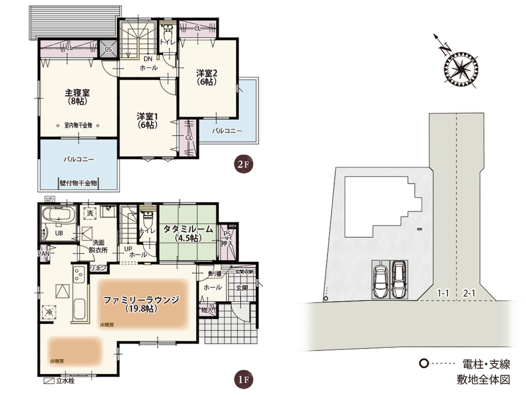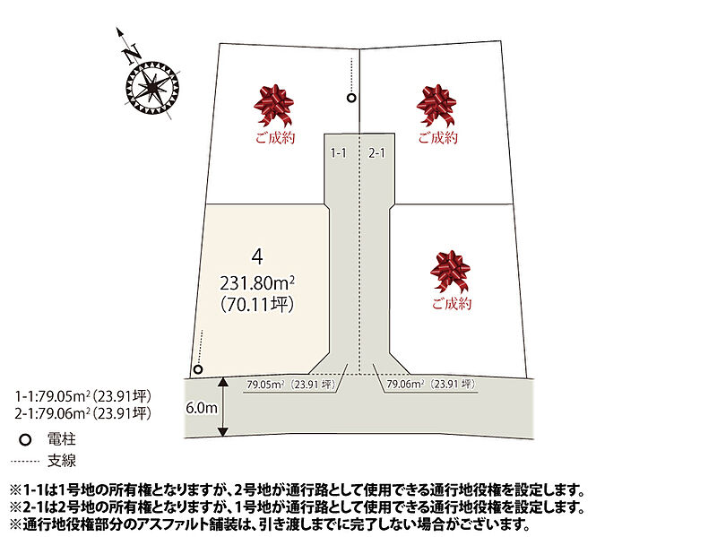| 駐車場 | 2台(駐車スペース2台分施工) | 道路の幅員 | 南 6.0m |