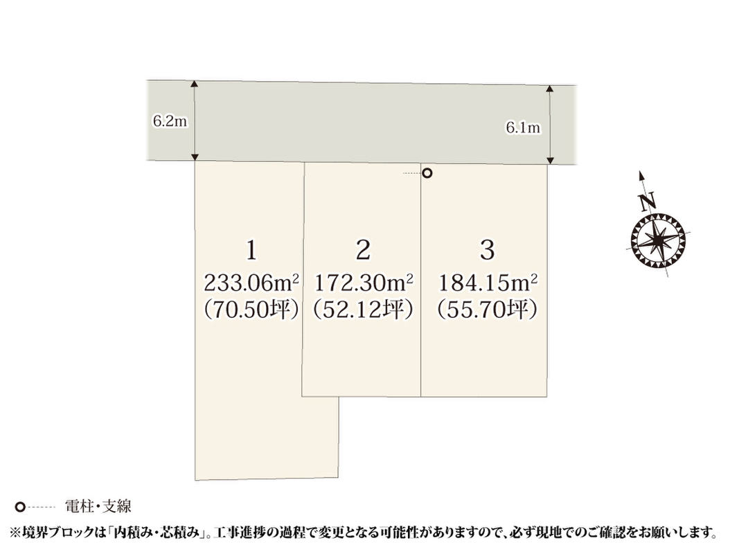 | 駐車場 | 2台 | 道路の幅員 | 北6.1m~6.2m |