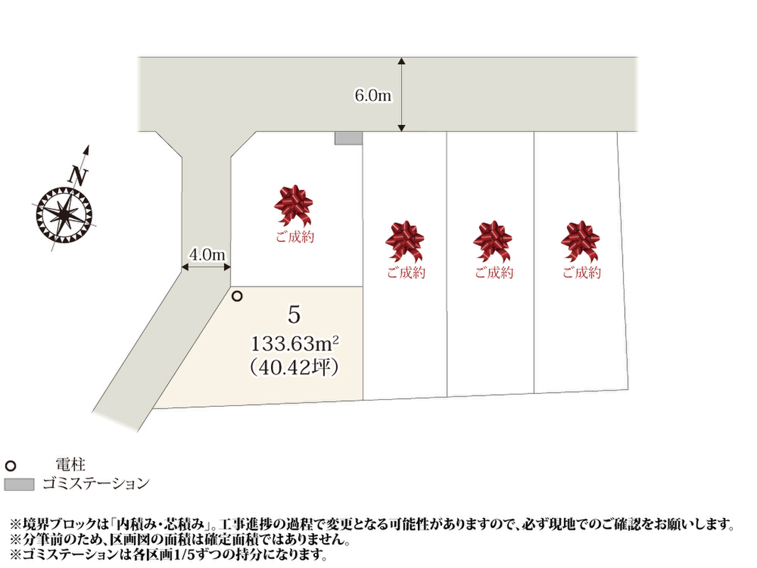 | 駐車場 | 2台 | 道路の幅員 | 北6.0m、西4.0m |