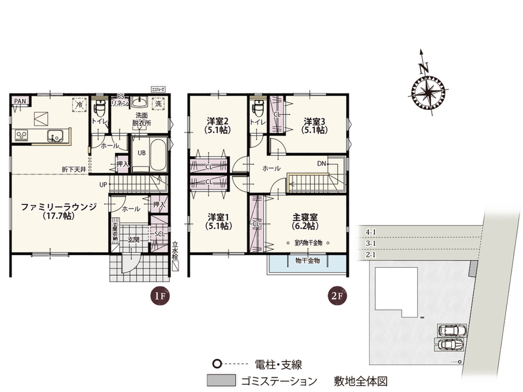| 建物面積 | 99.36m2~105.98m2(30.00坪~31.99坪) | 土地面積 | 308.19m2~374.31m2(93.22坪~113.22坪) |
