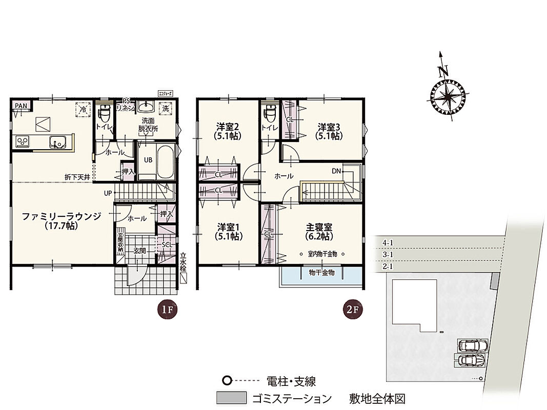 - ※完成予想図やCG合成画像は、門塀・植栽・庭・外観等、実際とは多少異なる場合があります。