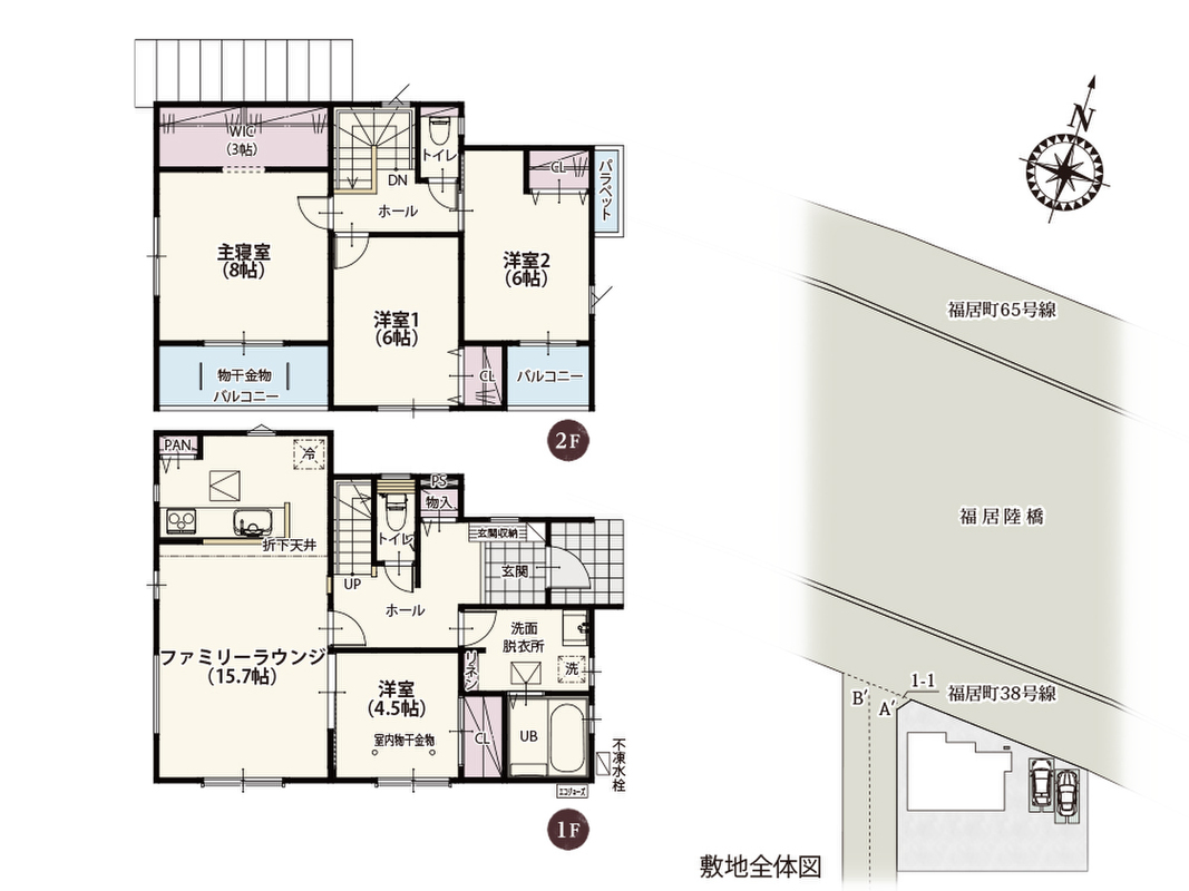 | 建物面積 | 105.15m2(31.80坪) | 土地面積 | 233.51m2(70.63坪) |