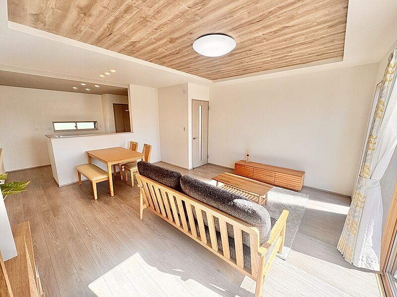■LDKは2種類の折上、折下天井でメリハリのついた17.7帖の広々空間(6号棟)
