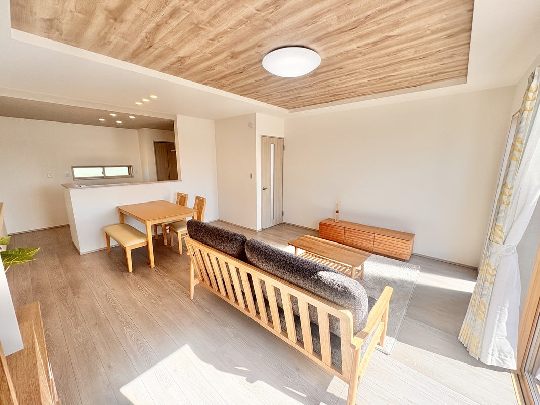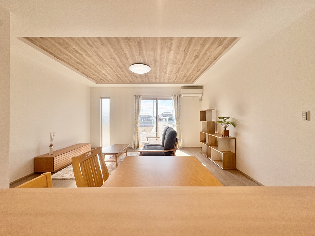 ■LDKは2種類の折上、折下天井でメリハリのついた17.7帖の広々空間(6号棟)