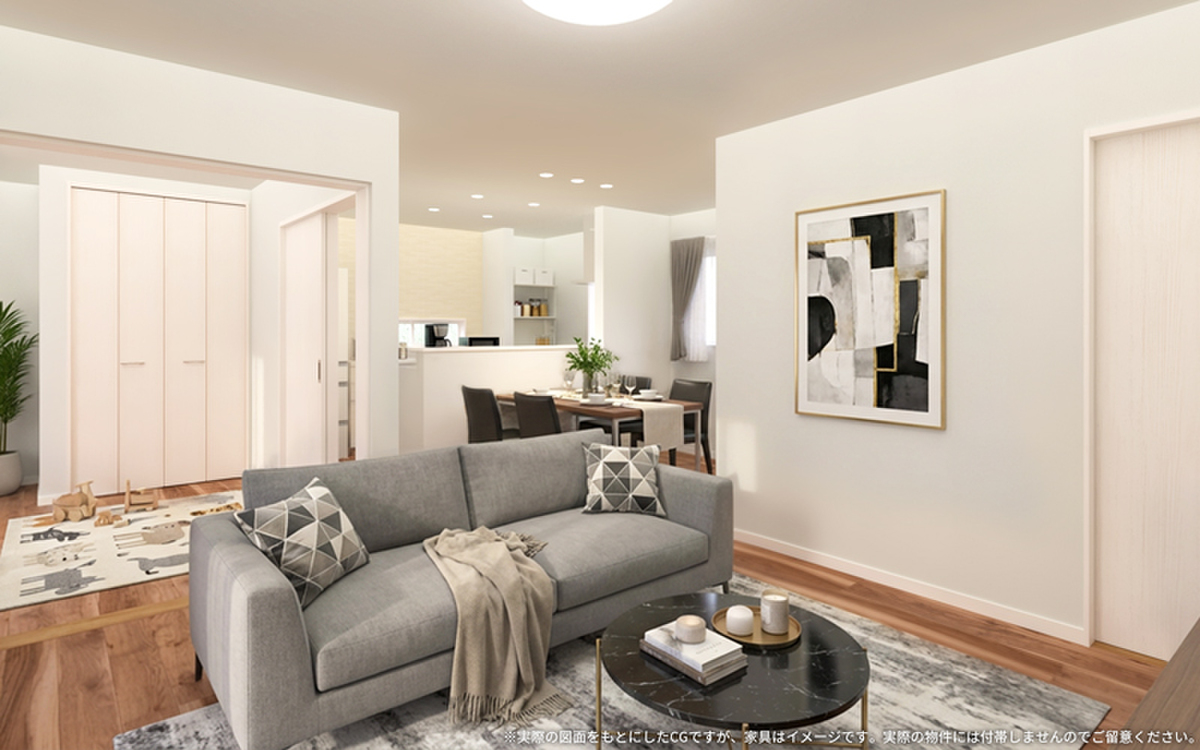 - ※完成予想図やCG合成画像は、門塀・植栽・庭・外観等、実際とは多少異なる場合があります。