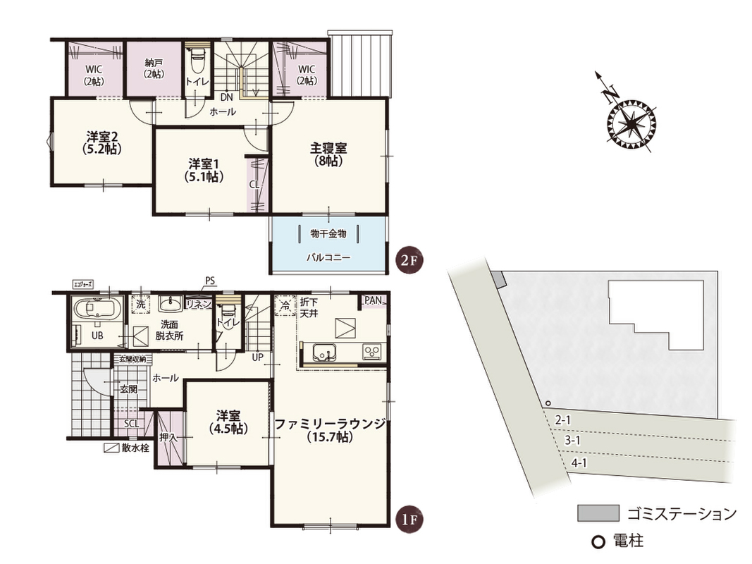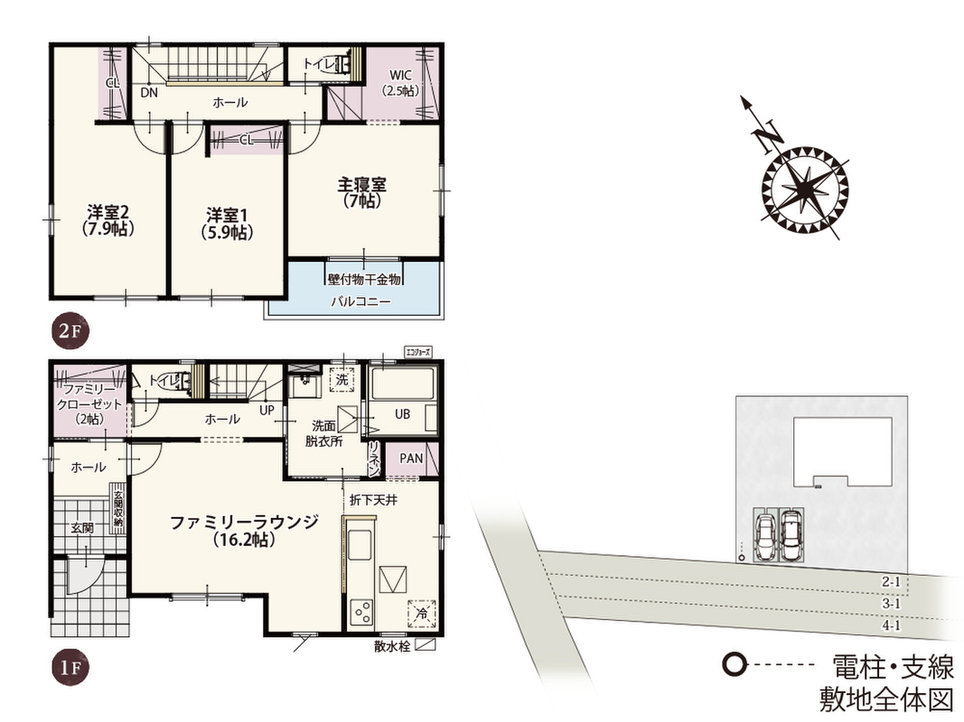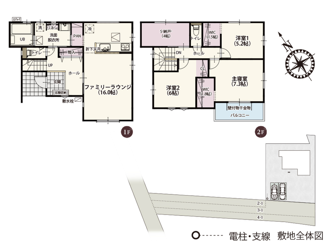 ■2階には2帖の開放的な収納が3ヶ所も設けられた収納たっぷりの整理整頓ラクラクプラン(1号棟)■全居室南向きで明るく過ごしやすい家(2号棟)■2階に約4帖の納戸がある収納に自信のある家(3号棟)