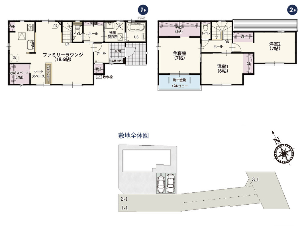 | 建物面積 | 102.67m2(30.99坪) | 土地面積 | 244.73m2・259.38m2(74.03坪・78.46坪) |