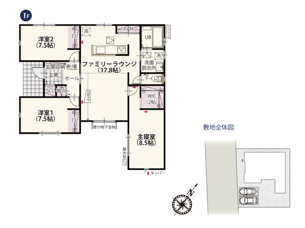 - ※完成予想図やCG合成画像は、門塀・植栽・庭・外観等、実際とは多少異なる場合があります。