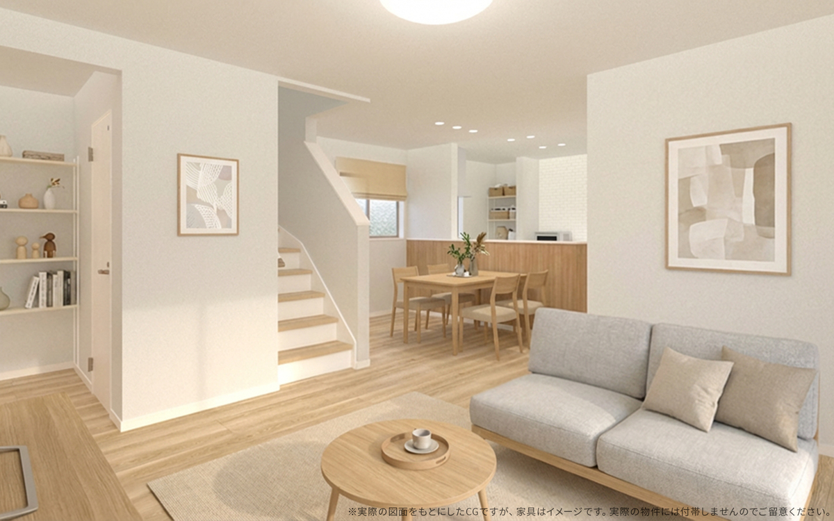 - ※完成予想図やCG合成画像は、門塀・植栽・庭・外観等、実際とは多少異なる場合があります。