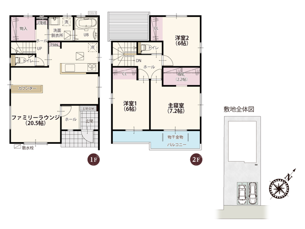 | 建物面積 | 102.68m2~104.2m2(31.06坪~31.52坪) | 土地面積 | 167.6m2・167.61m2(50.69坪・50.70坪) |