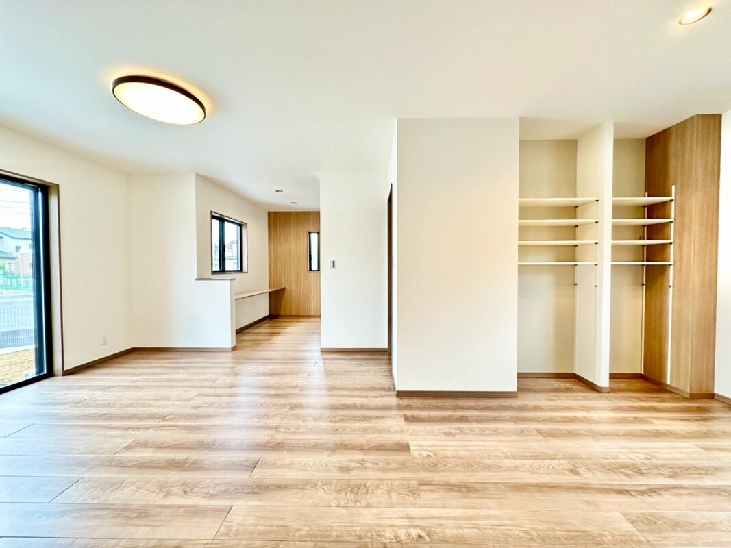 ■大きな家具を置ける20.9帖の開放的な床暖房付きのLDK!カウンター付きのワークスペースは家族の気配を感じながら作業にちょっと集中したい時に丁度いいスペース