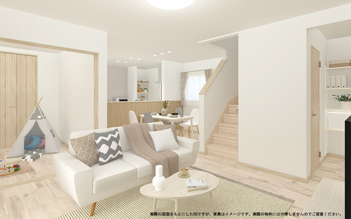 - ※完成予想図やCG合成画像は、門塀・植栽・庭・外観等、実際とは多少異なる場合があります。