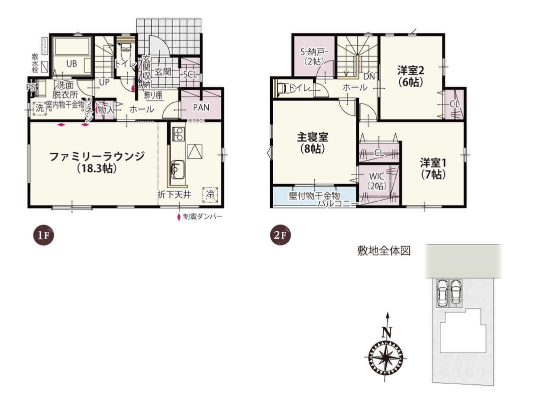 | 駐車場 | 2台 | 道路の幅員 | 北6.0m、南6.0m |