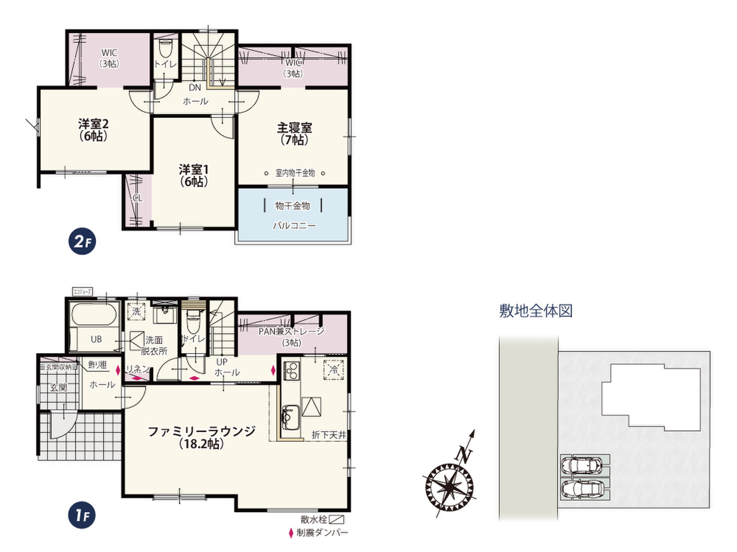 | 駐車場 | 2台 | 道路の幅員 | 西6.0m |