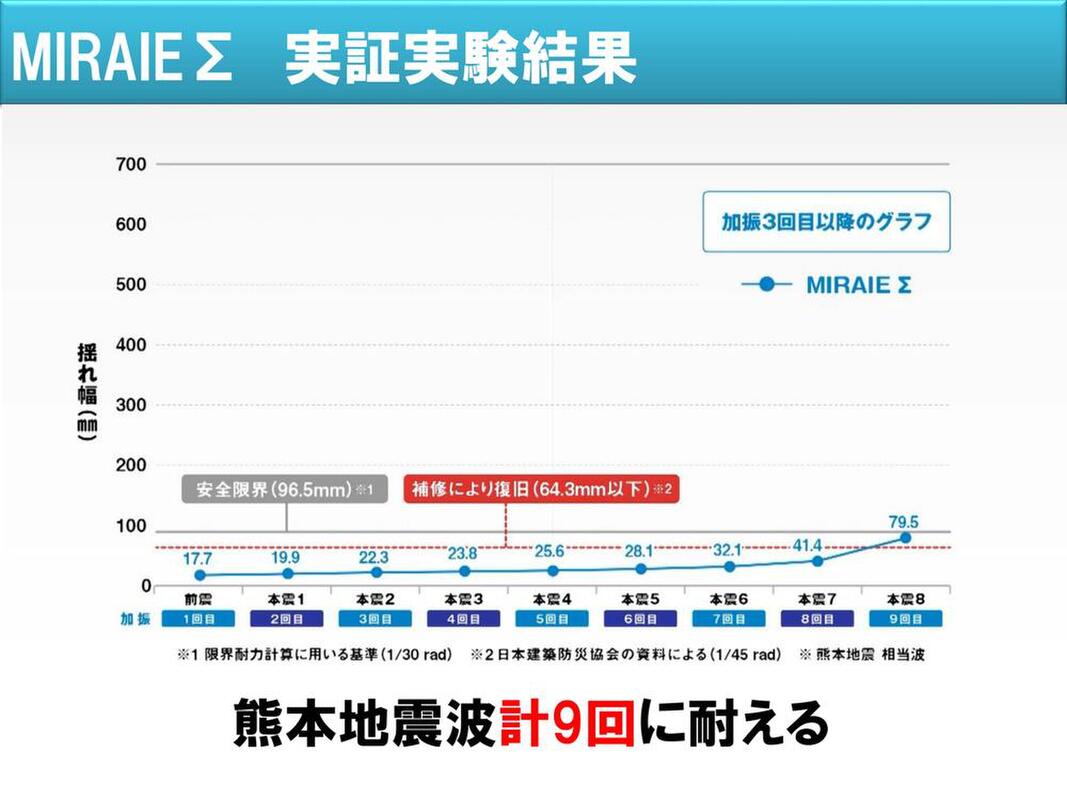 ミライエは、耐震工法の「体力壁強度が徐々...