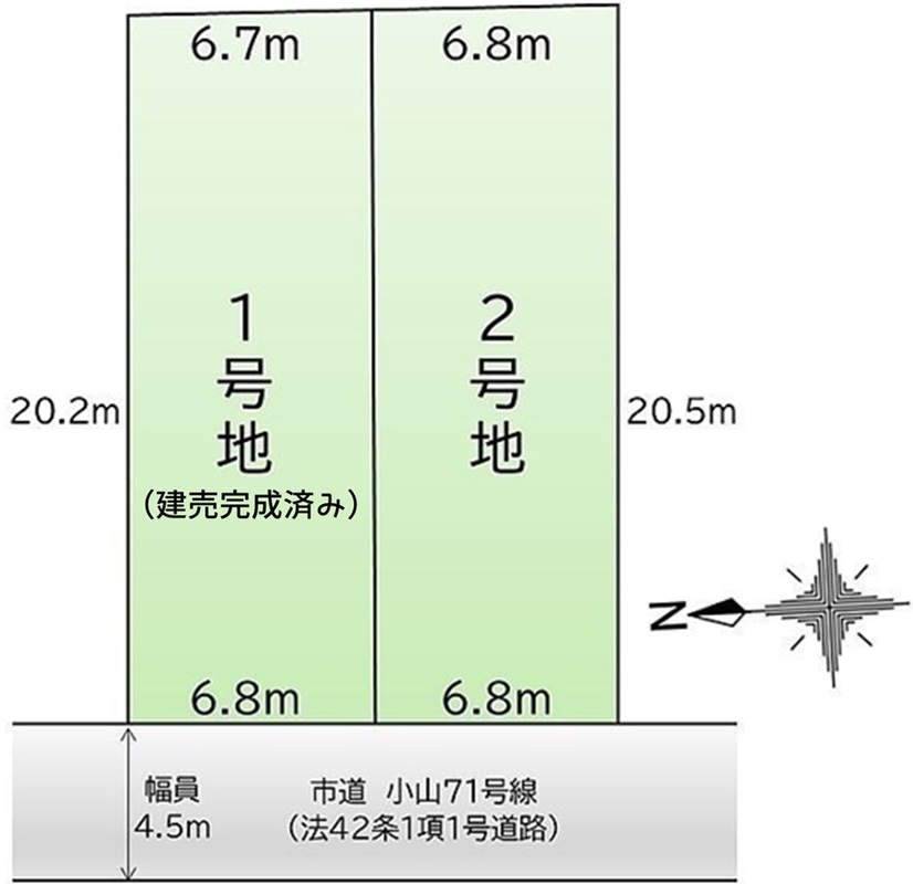 | 駐車場 | 2台 ~ 3台 | 道路の幅員 | 西側、幅員4.5m公道、接道6.8m |