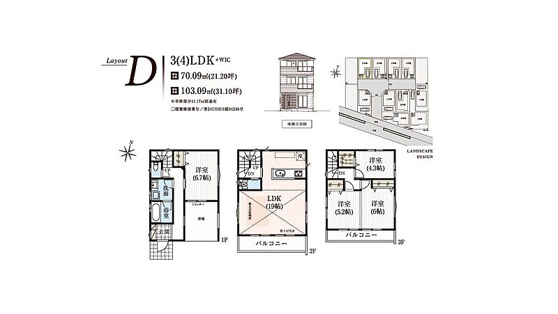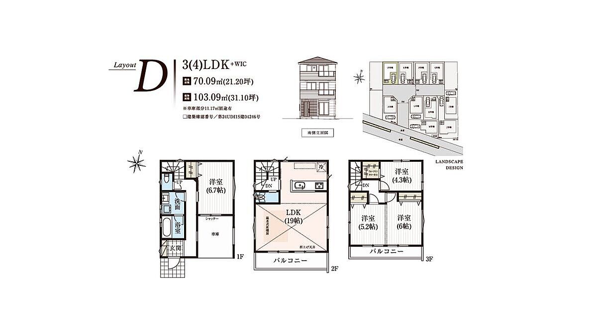 D号棟 間取り 3LDK 価格 5380万円 建物面積 103.09m2 土地面積 70.09m2 -