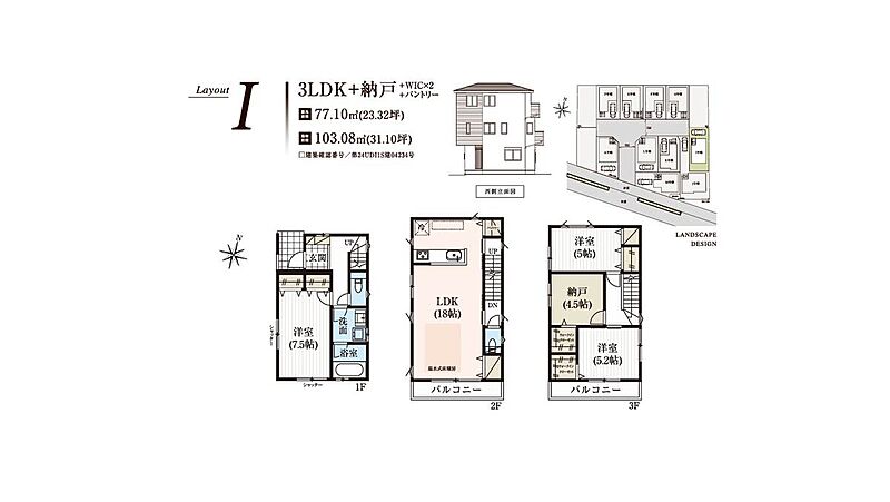 I号棟 間取り 3LDK+納戸+WIC×2+パントリー 価格 5280万円 建物面積 103.08m2 土地面積 77.1m2 -