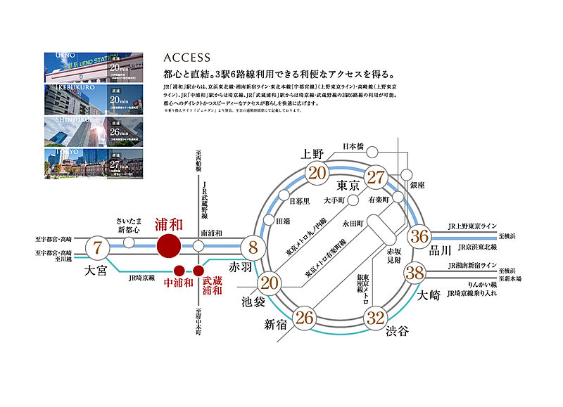 JR京浜東北・根岸線「浦和」駅 徒歩17分 JR埼京線「中浦和」駅 徒歩13分 JR武蔵野線「武蔵浦和」駅 徒歩22分 |