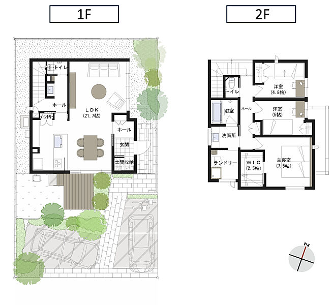 - ※完成予想図やCG合成画像は、門塀・植栽・庭・外観等、実際とは多少異なる場合があります。