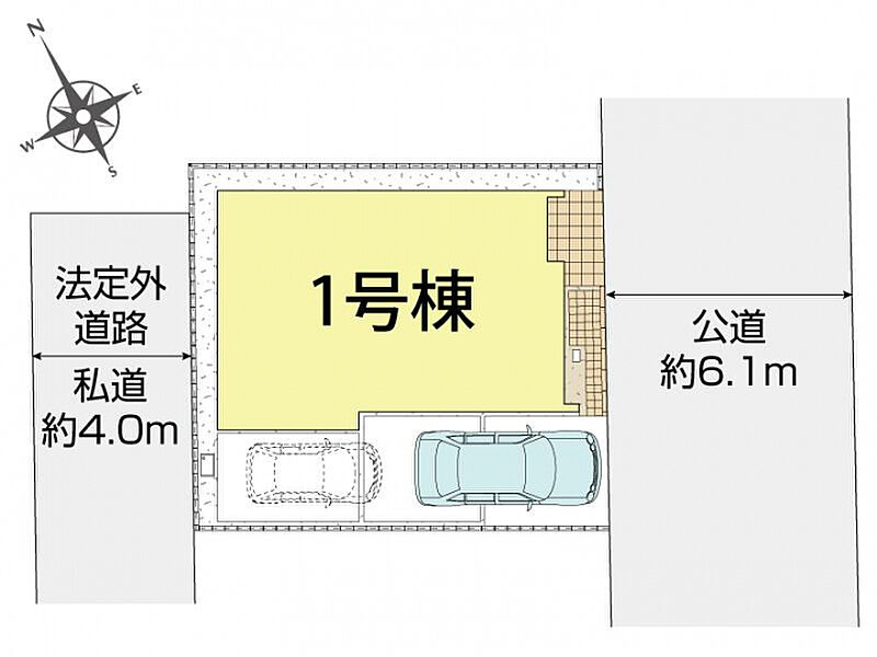 | 駐車場 | 1台 | 道路の幅員 | 南東6.1m公道、南西4.0m私道(法定外道路) |