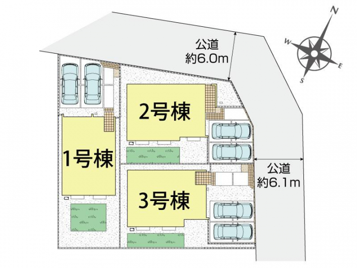 | 駐車場 | 2台 | 道路の幅員 | 東約6.1m公道、北約6.0m公道 |