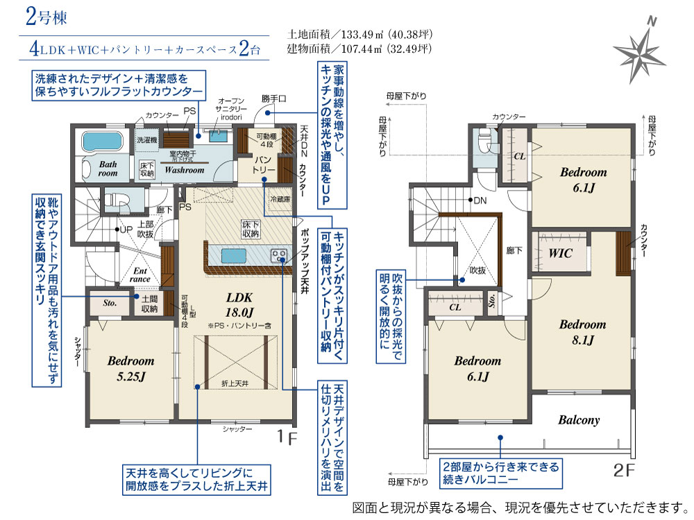 | 建物面積 | 107.02m2(約32.37坪)~107.44m2(約32.50坪) | 土地面積 | 133.49m2(約40.38坪) |