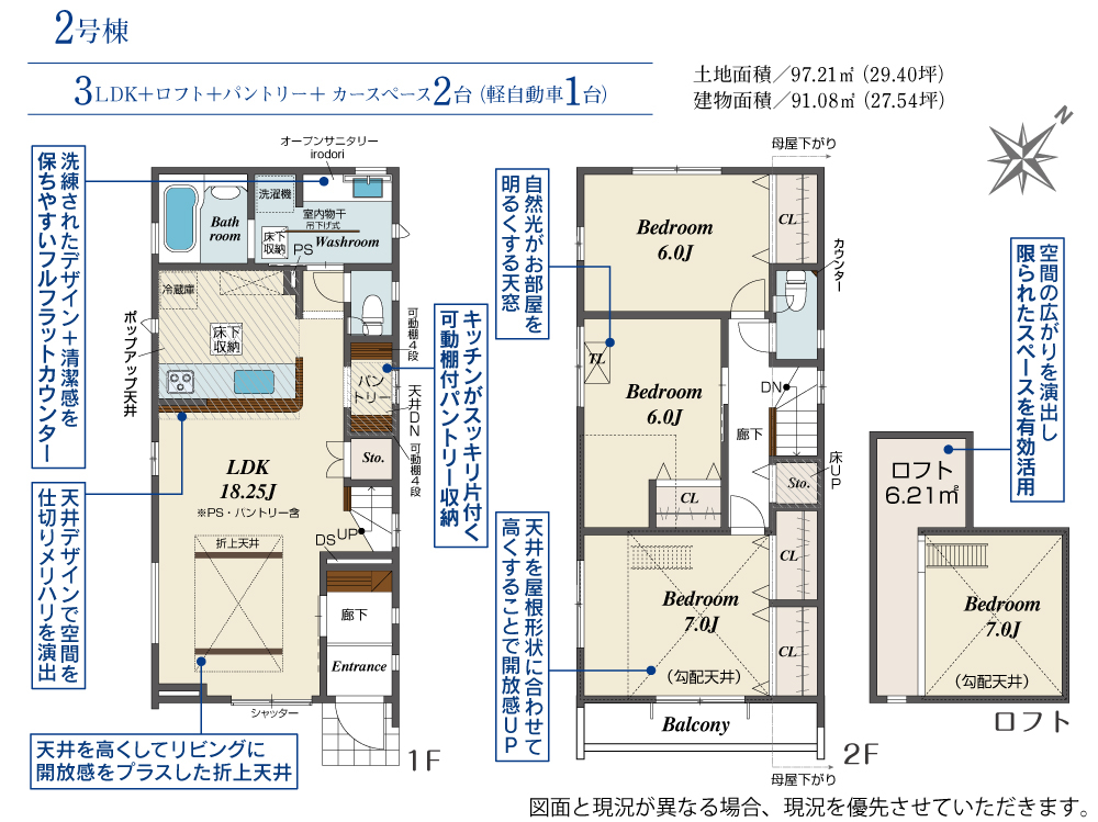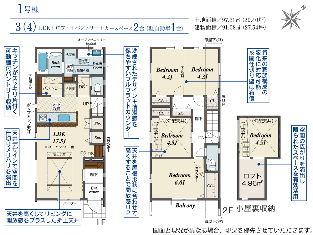 | 建物面積 | 91.08m2(約27.55坪) | 土地面積 | 97.21m2(約29.40坪) |